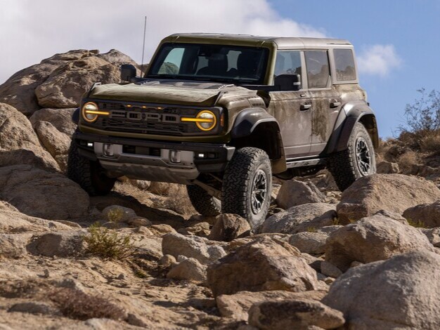 A High Package is included for the Raptor, which is the most powerful Ford Bronco model near Toccoa, GA, thanks to the 418-horsepower 3.0-liter EcoBoost® V6 engine. Appealing to Commerce, GA trail conquerors, Ford Bronco Raptor models sport larger 37-inch all-terrain tires. There are seven G.O.A.T. Modes® with the Terrain Management System™, and the Ford Bronco Raptor is equipped with the upgraded HOSS 4.0 Suspension featuring FOX™ Live Valve 3.1 Internal Bypass Semi-Active Dampers. A Carbonized Gray Molded hard top is included for the Ford Bronco Raptor. There's also a Ford Performance heavy-duty modular front bumper with RIGID® fog lamps, heavy-duty steel bash plates, and a front stabilizer bar disconnect. A 360-degree camera is added to the Ford Bronco Raptor so Toccoa, GA travelers have a great visual of the trail.